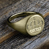 The 14mm cushion signet ring (2nd from right) has a more square aesthetic. This shape offers versatility because it shows initials, family crests, and textured designs very beautifully.
